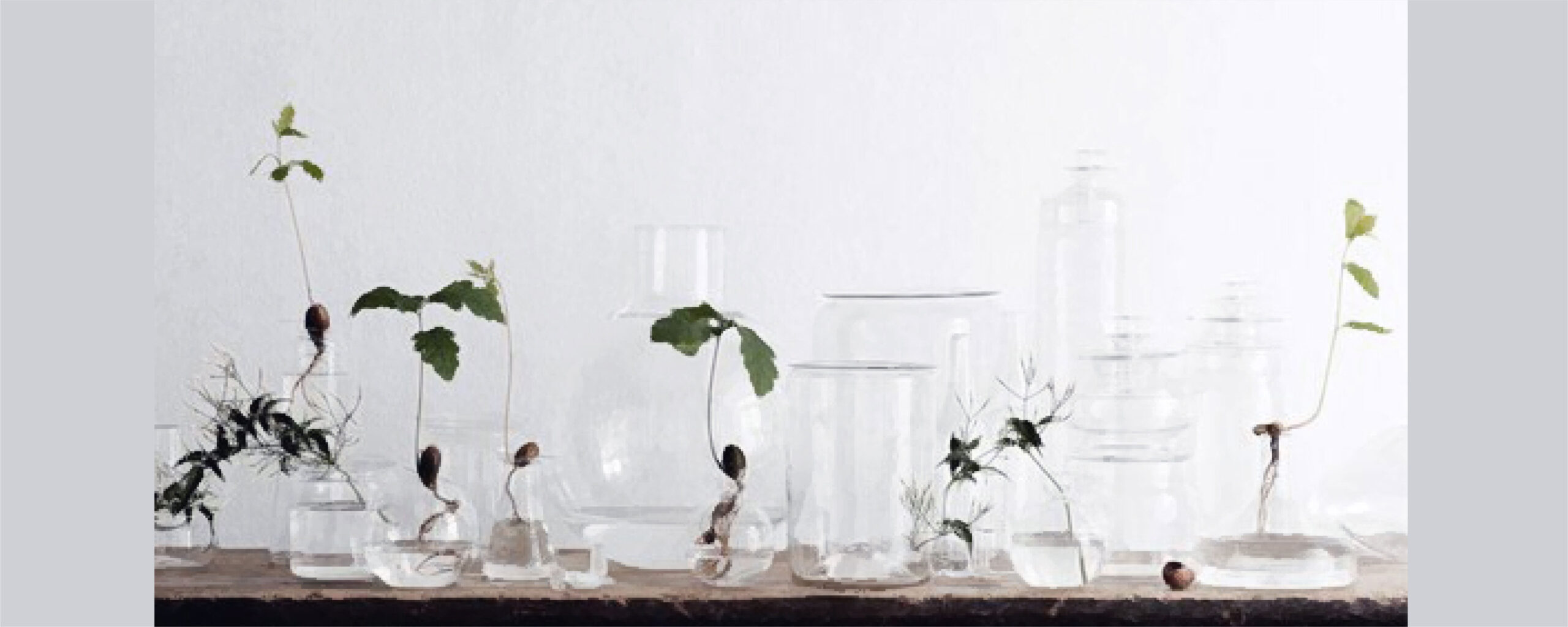 在疫情洗禮後,在那個大家都居家上班的時期,某日黃昏時,我一如往常的,走到窗邊,想泡杯茶來喝。卻看見平時未曾注意過的,玻璃杯在窗檯邊的光陰,好美。當時我心想著若玻璃杯中,有個植物,這樣的光還能成為它的養分,於是開始我陸陸續續購買精緻小瓶器的緣起 ……